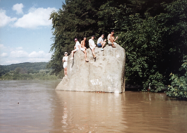Most memorable picture:An unusually high amount of rainfall caused the Susquehanna to be very high in August 1992. This was the first year that we were actually able to climb onto the Stone. Usually the Stone sticks out of the water twice as far as seen in this picture.