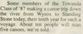 The following appeared in the Towanda Daily Review on July 27, 1996: